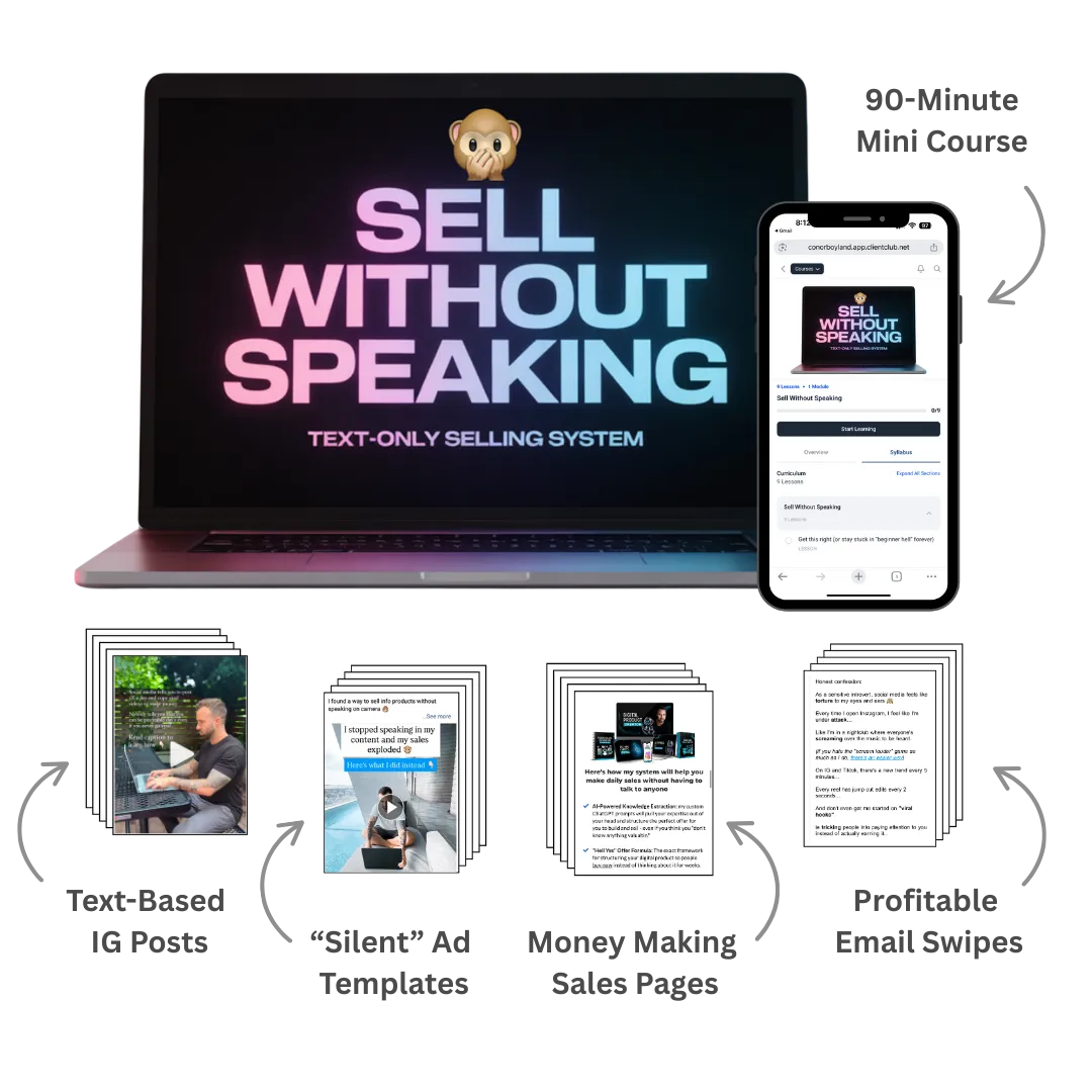 Inside “Sell Without Speaking”, I’m going to give you the exact words you need to sell your course, coaching program or membership…
